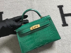 MiniKelly 2代 迷你凯莉包 美洲鳄鱼皮 绿色金扣