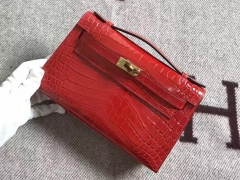 Hermès(爱马仕) Mini Kelly迷你凯莉 法拉利红 鳄鱼皮 金扣 22cm