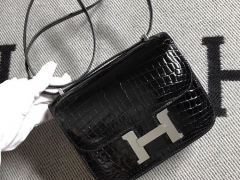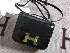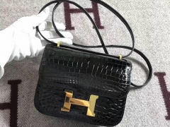 Hermes爱马仕 Constance 19 黑色 鳄鱼皮 金扣