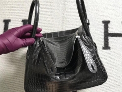 Hermes 爱马仕 雾面鳄鱼皮 Lindy 26CM 琳迪包 黑色银扣