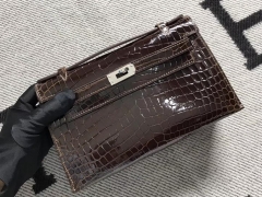 Hermès(爱马仕) Mini Kelly迷你凯莉 深咖啡色 银扣 22cm