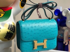 Hermès(爱马仕)Constance 18cm Ostrich kk 鸵鸟 7F 孔雀蓝 金扣 顶级手缝 现货