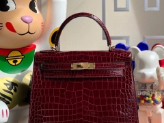 Hermès(爱马仕)Kelly 28cm porosus shiny 亮面澳洲湾鳄 ck57 波尔多酒红 金扣 顶级手缝 现货