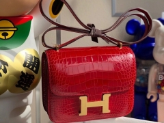 Hermès(爱马仕)Constance 18cm Alligator shiny 亮面鳄鱼 ck95 法拉利红 Braise 金扣 顶级手缝 现货