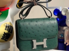 Hermès(爱马仕)Constance 18cm Ostrich kk 鸵鸟 z6 孔雀绿 银扣 顶级手缝 现货