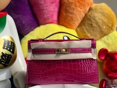 Hermès(爱马仕)Mini kelly pochette 22cm Alligator shiny 亮面鳄鱼 J5 天方夜谭粉紫 金扣 顶级手缝 晚宴包 现货