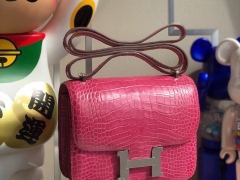 Hermès(爱马仕)Constance 18cm Alligator shiny 亮面鳄鱼 5J 桃粉 银扣 顶级手缝 现货