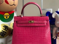 Hermès(爱马仕)Kelly 25cm Porosus shiny 亮面澳洲鳄鱼 5J 桃粉 金扣 顶级手缝 现货