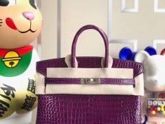Hermès(爱马仕)Birkin 25cm Porosus shiny 亮面澳洲鳄鱼 9G紫水晶 银扣 顶级手缝 现货