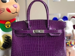 Hermès(爱马仕)Birkin 30cm Porosus shiny 亮面澳洲湾鳄 紫水晶 银扣 顶级手缝 品相完美 现货