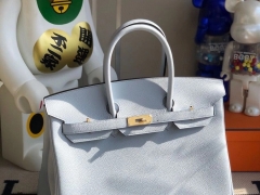 Hermès(爱马仕)Birkin 40cm 原厂小牛皮 T0雾蓝色 金扣 顶级手缝 定制