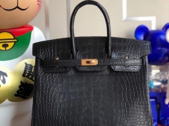 Hermès(爱马仕)Birkin 25cm alligator matt 雾面鳄鱼ck89 黑色 金扣 正品五金 顶级手缝 定制