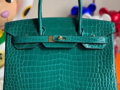 Hermès(爱马仕)Birkin 30cm Porosus shiny 亮面澳洲湾鳄 6Q 翡翠绿 金扣 顶级手缝 品相完美 现货