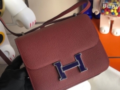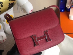 Hermès(爱马仕)Constance 18cm Epsom 原厂掌纹皮 ck55爱马仕红拼珐琅扣 银扣 顶级手缝 定制