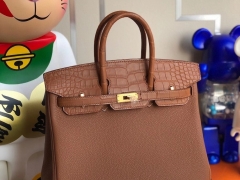 Hermès(爱马仕)Touch系列 Birkin 25cm 金棕色拼雾面棕色鳄鱼 金扣 顶级手缝 定制