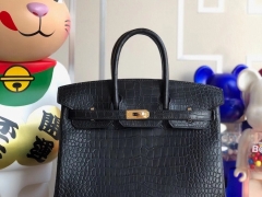 Hermès(爱马仕)Birkin 25cm Porosus matt 雾面鳄鱼 ck89 黑色 金扣 顶级手缝 定制