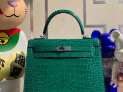Hermès(爱马仕)Kelly 25cm Alligator shiny 亮面鳄鱼6Q 翡翠绿 银扣 顶级手缝 现货