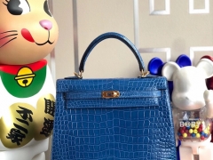 Hermès(爱马仕)Kelly 25cm Alligator shiny 亮面鳄鱼7k 宝石蓝 金扣 顶级手缝 现货