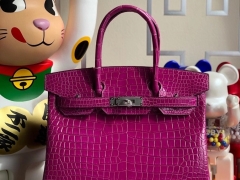 Hermès(爱马仕)Birkin 30cm Porosus shiny 亮面澳洲湾鳄 L3 玫瑰紫 rose purple 银扣 顶级手缝 现货