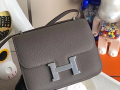 Hermès(爱马仕)Constance 18cm Epsom 原厂掌纹皮 8F 锡器灰 etain 银扣 顶级手缝 定制