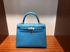 Hermès(爱马仕)Kelly凯莉包 Ostrich kk鸵鸟 7w 伊兹密尔蓝 金扣 小可爱 25cm 现货