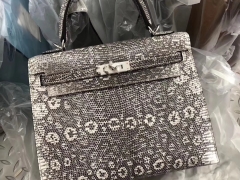 Hermès(爱马仕)Kelly凯莉包 Lizard 御用进口蜥蜴皮 全手工蜜蜡线缝 01自然色 银扣 25cm 现货