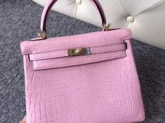 Hermès(爱马仕)Kelly 凯莉包 Alligator matt 雾面鳄鱼 芭比粉 银扣 浅浅的粉 小可爱 25cm现货