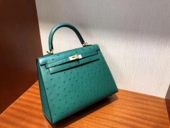 Hermès(爱马仕)Kelly凯莉包 Ostrich kk鸵鸟 U4 丝绒绿 金扣 小可爱 25cm 现货