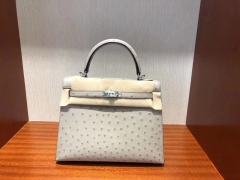 Hermès(爱马仕)Kelly 凯莉包 Ostrich kk鸵鸟 冰川灰 银扣 小可爱 25cm 现货