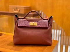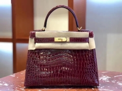Hermès(爱马仕)Kelly-2424 波尔多酒红 原厂御用顶级小牛皮拼鳄鱼皮 togo 金扣 29cm