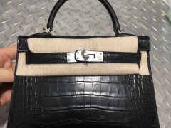 Hermès(爱马仕)Kelly 25cm Alligator matt 雾面鳄鱼 ck89 黑色 Noir 银扣 顶级手缝 现货