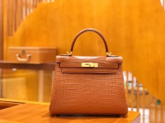 Hermès(爱马仕)Kelly 凯莉包 尼罗鳄鱼皮 蜜糖棕 28cm