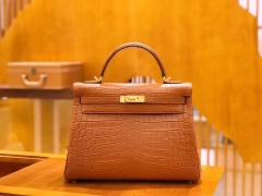 Hermès(爱马仕)Kelly凯莉包 亮面澳洲鳄鱼纹 ck31 蜜糖棕 Miel 金扣 28cm 现货
