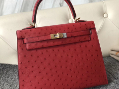 Hermès(爱马仕)Kelly 25cm Kk鸵鸟 Q5 国旗红 Rouge casaque 金扣 顶级手缝