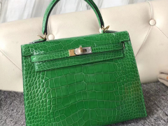 Hermès(爱马仕)Kelly 凯莉包 crocodile 亮面美洲鳄 1L仙人掌绿 蜡线全手工 金扣 接受预定 25cm
