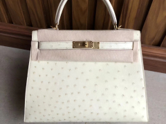 Hermès(爱马仕)Kelly 28cm Ostrich kk鸵鸟 3C 羊毛白 金扣 顶级手缝