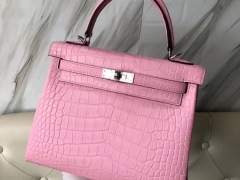 Hermès(爱马仕)Kelly 25cm Alligator matt 雾面鳄鱼 5p 樱花粉 银扣 顶级手缝