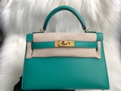 Hermès(爱马仕)Minikelly ll Swift 7F 孔雀蓝 金扣 顶级手缝