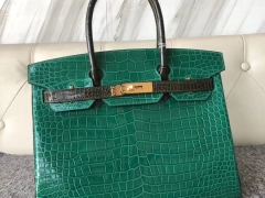 Hermès(爱马仕)Birkin 30cm Porosus shiny 澳洲湾鳄 6Q翡翠绿 6H 橄榄绿 金扣 马蹄印