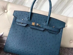 Hermès(爱马仕)Birkin 铂金包 Ostrich kk 鸵鸟 7C 珊瑚蓝 金扣 顶级手缝 30cm 现货
