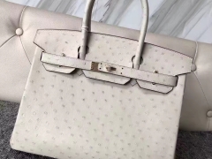Hermès(爱马仕)Birkin 铂金包 Ostrich kk 鸵鸟 3C 羊毛白 金扣 顶级手缝 30cm 现货