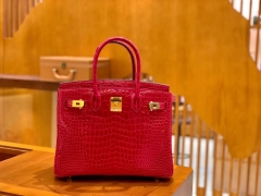 Hermès(爱马仕)Birkin30cm Porosus shiny 亮面澳洲湾鳄 ck95 法拉利红 Braise 金扣 现货